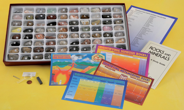 American Educational Products LLC has been supplying the highest quality classroom materials domestically and internationally for more than 70 years. With our creative in-house product development team, we are able to introduce new products on a yearly basis. Our products have helped teachers bring the joy of discovery, through hands-on and investigative learning styles, to generations of students. We are sincerely proud of our legacy and we promise to strive to meet the needs of present and future students as they prepare to become knowledgeable and successful world citizens. Basic unit of 75 rocks and minerals demonstrates the major rock-forming minerals; the scale of hardness; and recognized physical properties.