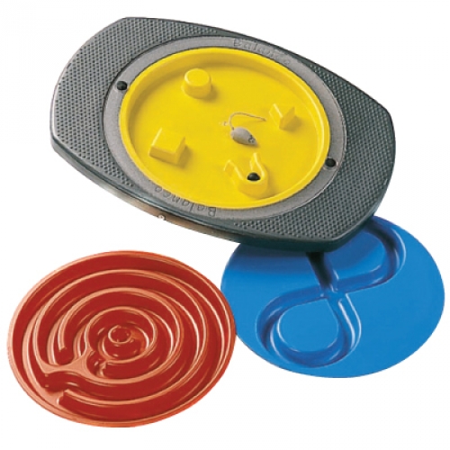 Balanco stimulates psycho and sensomotor functions such as coordination mobility reaction concentration and improved posture. Three different inserts are included for varying degrees of difficulty: Mouse Game Horizontal Eight and Maze. Max weight is 260 lbs. Grades PreK+