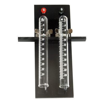 - The black acrylic background aids in viewing the water level while supporting the test tubes