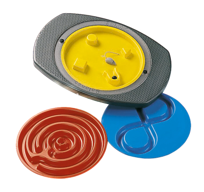 Balanco is suitable for play sports training and goal-directed rehabilitation. Balanco stimulates psycho and sensomotor functions such as coordination mobility reaction concentration and improved posture. Three different inserts are included for varying degrees of difficulty; Mouse-game Horizontal Eight and Maze.