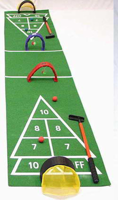 American Educational Products LLC has been supplying the highest quality classroom materials domestically and internationally for more than 70 years. With our creative in-house product development team, we are able to introduce new products on a yearly basis. Our products have helped teachers bring the joy of discovery, through hands-on and investigative learning styles, to generations of students. We are sincerely proud of our legacy and we promise to strive to meet the needs of present and future students as they prepare to become knowledgeable and successful world citizens. Learn to putt with this indoor/outdoor game mat set. Green mat has shuffle board style markings for easy scoring. Includes two movable goals and three putt through targets as well as two foam covered golf clubs and 6 colorful foam golf balls.